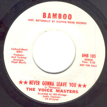 Voice Masters Never Gonna Leave You / If A Woman Catches A Fool Bamboo Demo / Promo Copy BMB 105 7 Inch US Vg+/++ Very minor biro mark on both labels.